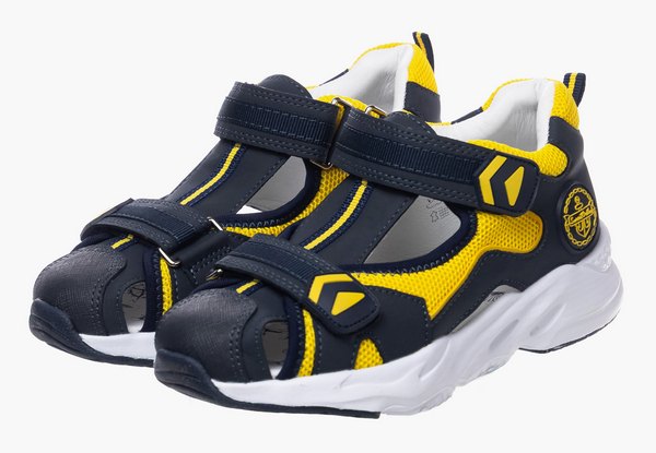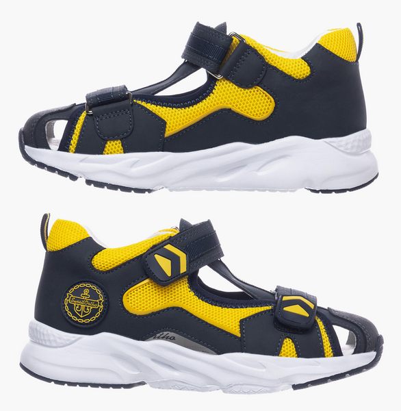 Сандалии в ярком дизайне станут незаменимым элементом в летнем гардеробе ребенка. Модель обеспечивает комплексную анатомическую поддержку. Формоустойчивый задник фиксирует пятку, предотвращая заваливание и формируя правильную биомеханику ходьбы. Встроенная анатомическая стелька распределяет нагрузку на стопы. Верх модели выполнен из комбинации натуральной кожи и дышащего текстиля. Две липучки Велкро легко регулируются, позволяя быстро надеть и снять обувь. Для защиты от натирания модель оснастили мягким кантом в районе голени и кожаной подкладкой. Пластичная подошва обеспечивает естественную работу мышц. Легкая амортизирующая подошва из пористого материала ЭВА имеет антискользящий резиновый протектор.